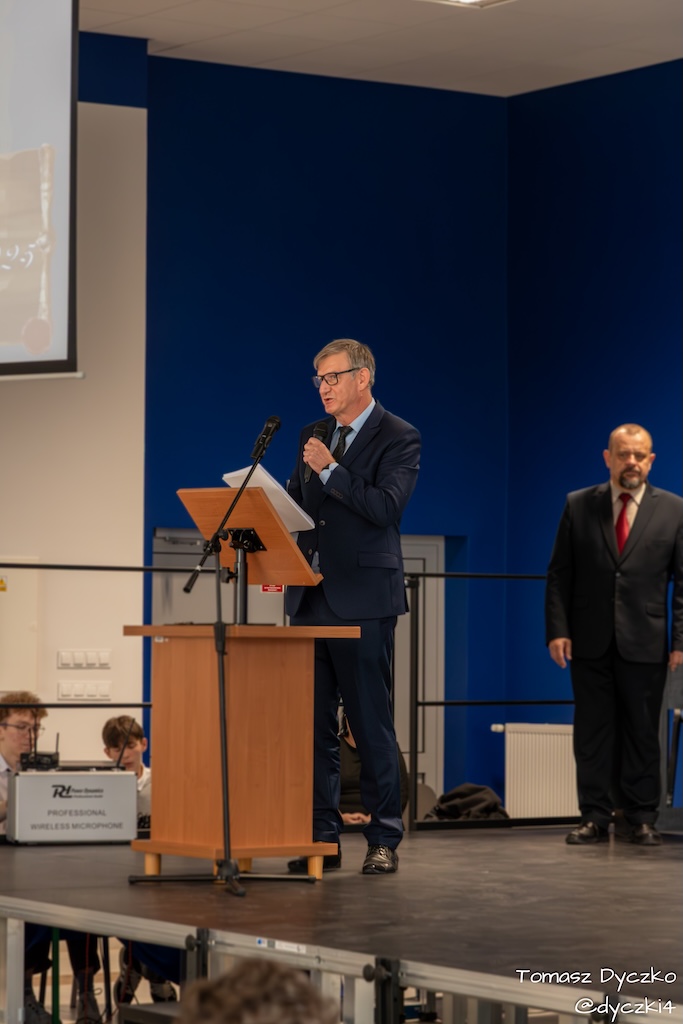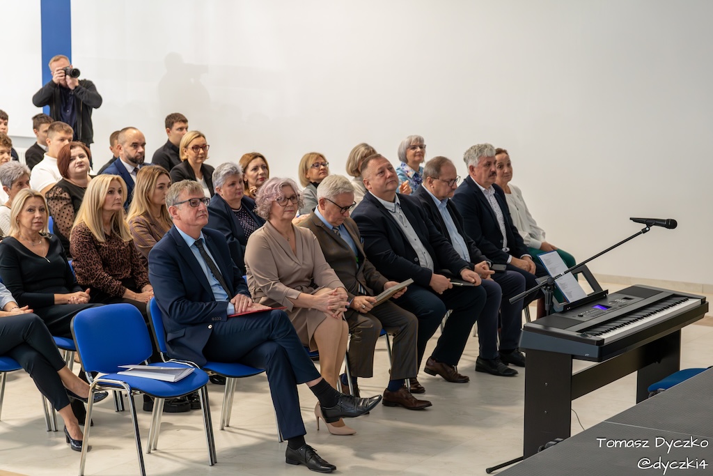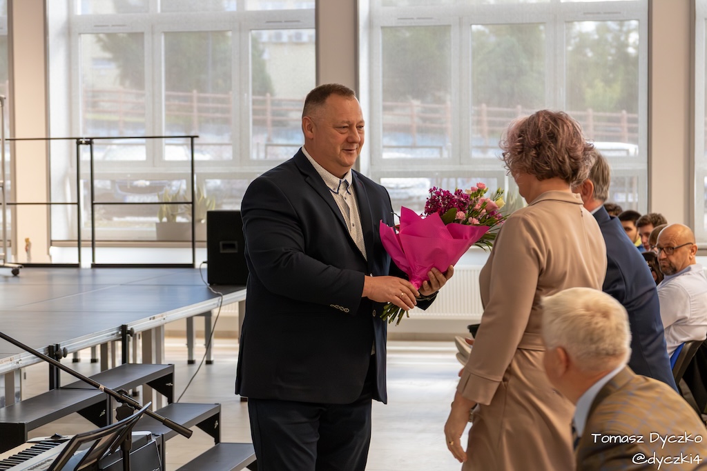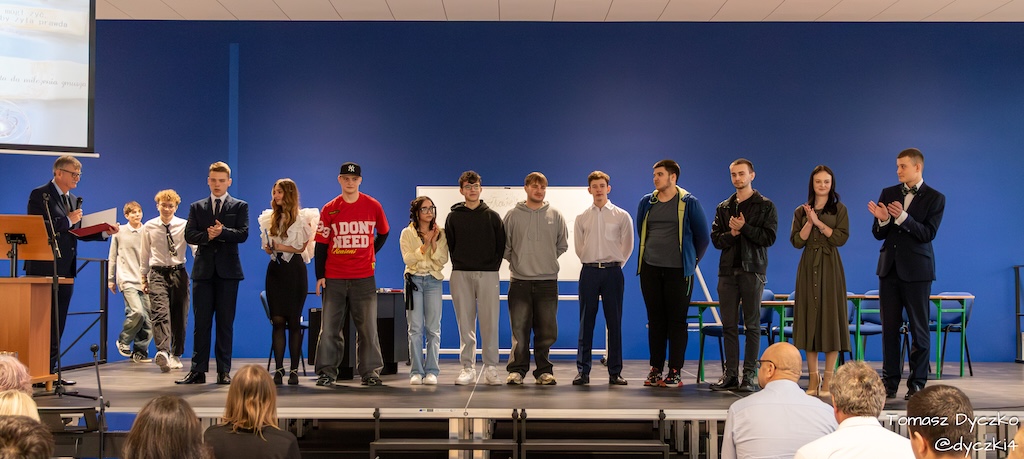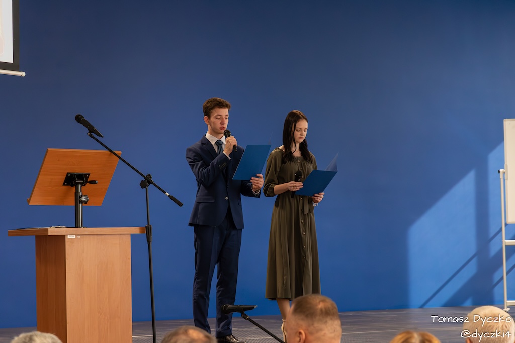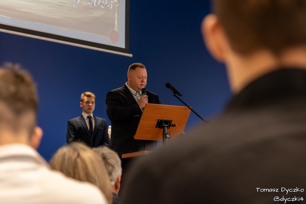 Ciepłe słowa wdzięczności popłynęły również od zaproszonych gości. Głos zabrał Prezes Stowarzyszenia TRIADA, pan Jarosław Martyniuk, który podkreślił znaczenie szkolnictwa zawodowego w kształtowaniu przyszłości młodych ludzi oraz wręczył ufundowane przez stowarzyszenie nagrody im. prof. Tadeusza Martyniuka. Następnie głos zabrał Przewodniczący Rady Rodziców, pan Przemysław Kuryś, który w imieniu rodziców podziękował nauczycielom i wszystkim pracownikom szkoły za ich codzienny trud, zaangażowanie i troskę o rozwój uczniów.