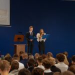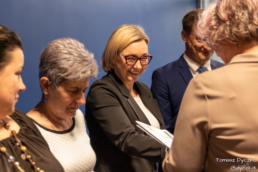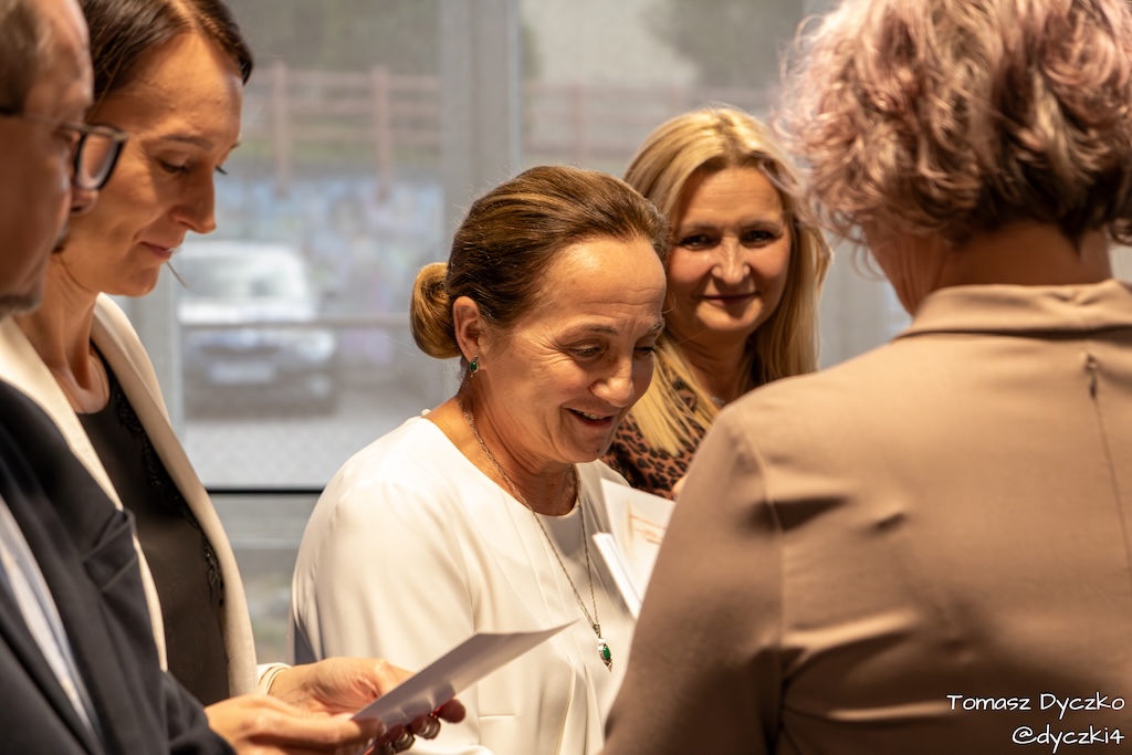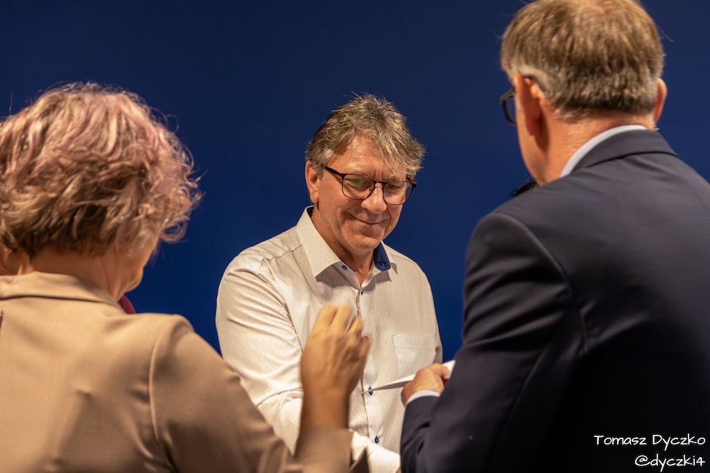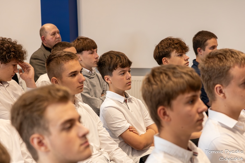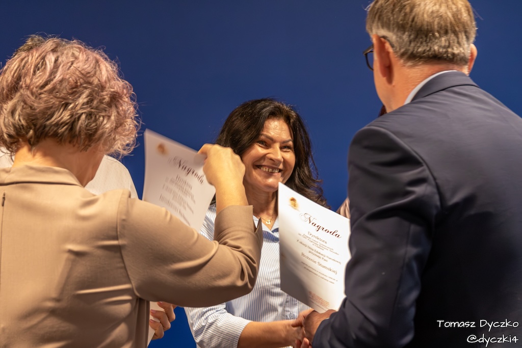 Ciepłe słowa wdzięczności popłynęły również od zaproszonych gości. Głos zabrał Prezes Stowarzyszenia TRIADA, pan Jarosław Martyniuk, który podkreślił znaczenie szkolnictwa zawodowego w kształtowaniu przyszłości młodych ludzi oraz wręczył ufundowane przez stowarzyszenie nagrody im. prof. Tadeusza Martyniuka. Następnie głos zabrał Przewodniczący Rady Rodziców, pan Przemysław Kuryś, który w imieniu rodziców podziękował nauczycielom i wszystkim pracownikom szkoły za ich codzienny trud, zaangażowanie i troskę o rozwój uczniów.