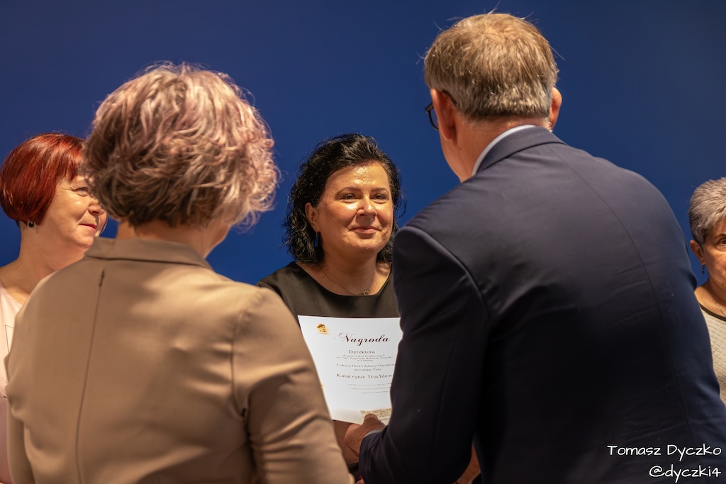 W części oficjalnej głos zabrał Dyrektor szkoły, pan Grzegorz Czyżyk, który złożył nauczycielom i pracownikom szkoły serdeczne życzenia oraz podziękował za ich codzienny trud, zaangażowanie i pasję w pracy z młodzieżą. Wyróżnieni pedagodzy oraz pracownicy szkoły otrzymali nagrody Dyrektora w uznaniu za szczególne osiągnięcia dydaktyczne i wychowawcze.