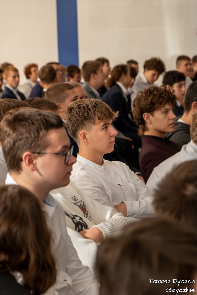 Po wprowadzeniu sztandaru szkoły i odśpiewaniu hymnu narodowego, prowadzący przypomnieli znaczenie Dnia Edukacji Narodowej oraz historyczne dziedzictwo Komisji Edukacji Narodowej, pierwszego w Europie ministerstwa oświaty, powołanego w 1773 roku. Wspomniano również słowa Jana Zamoyskiego: „Takie będą Rzeczypospolite, jakie ich młodzieży chowanie” — które do dziś pozostają aktualnym przesłaniem dla wszystkich pokoleń uczniów i nauczycieli.