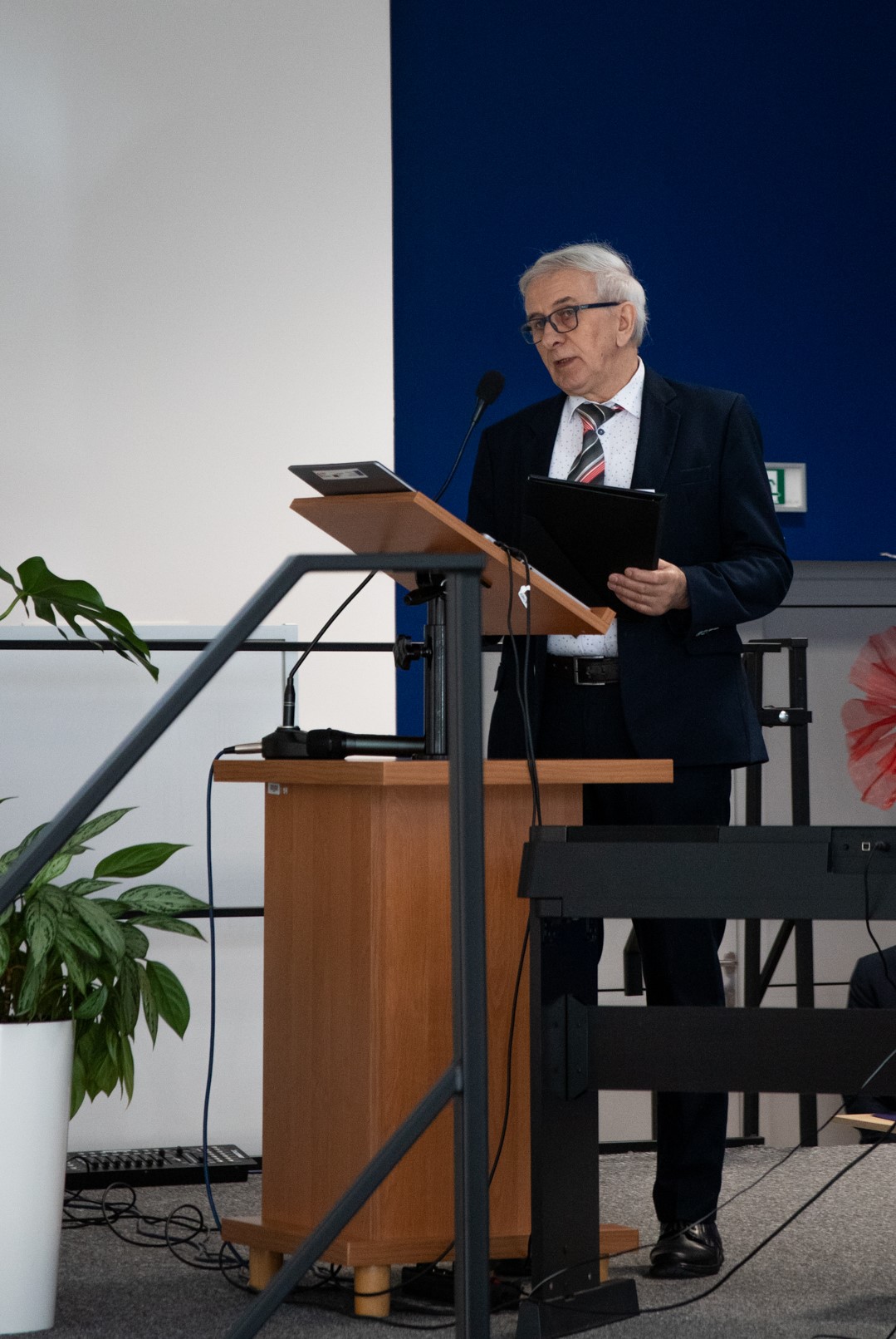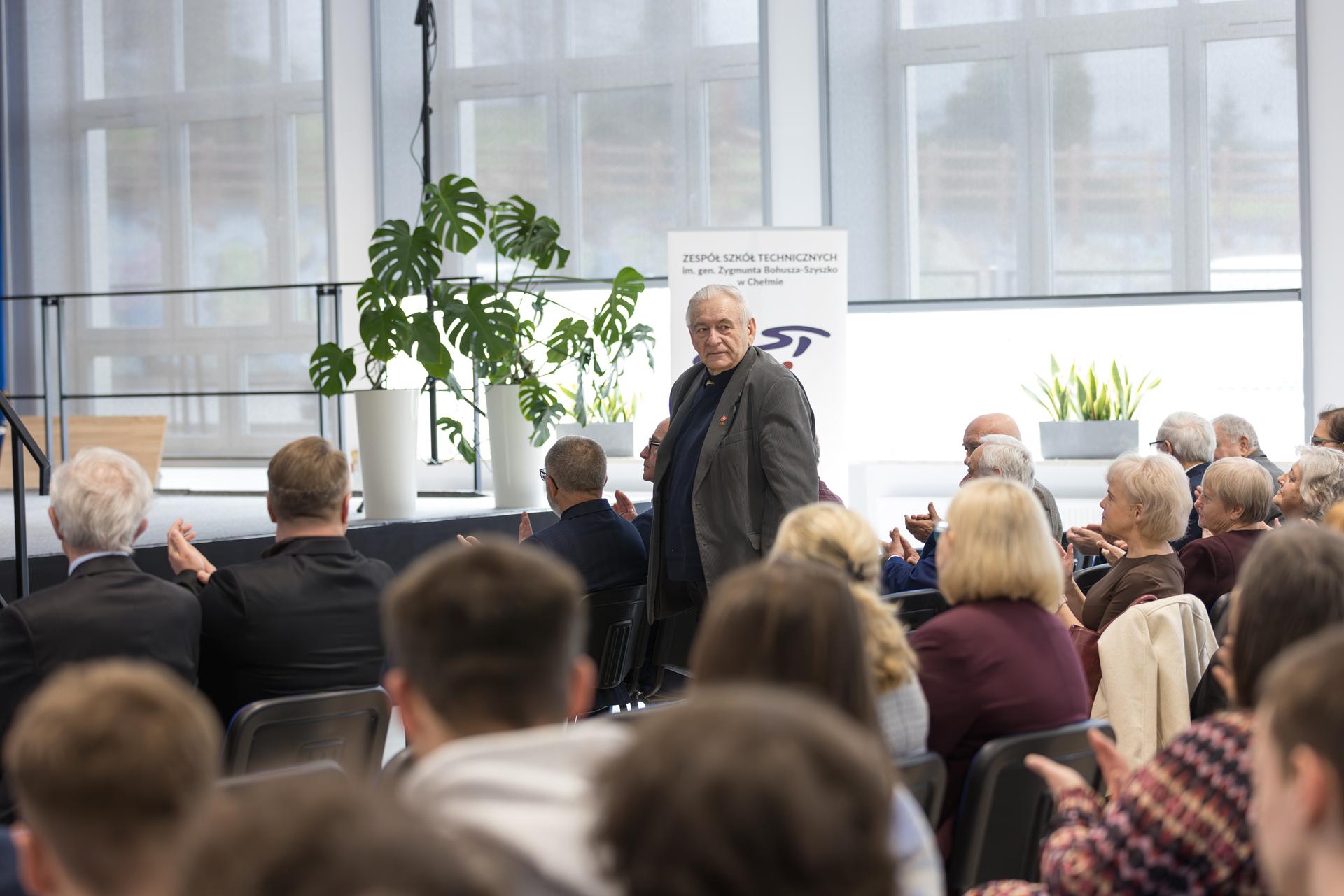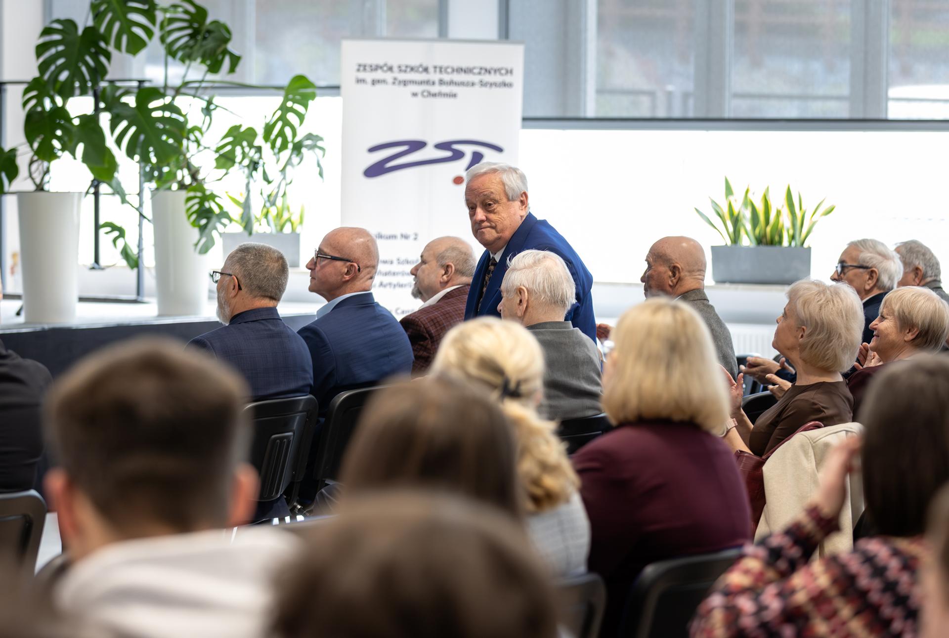 Pan Jan Niewożewski – wiceprezes Chełmskiego Stowarzyszenia Technicznego im. Ewarysta Stobnickiego w Chełmieprzedstawił historię Zespołu Szkół Mechanicznych;