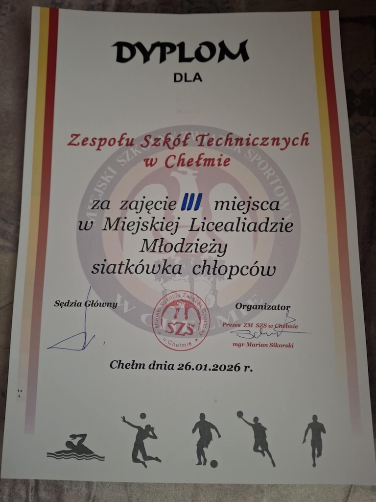Siatkarze ZST odnieśli zwycięstwa nad zespołami ZSBiG oraz ZSHiG, co zapewniło im awans do turnieju finałowego. Finał Miejskiej Licealiady rozegrano 26 stycznia 2026 roku w I Liceum Ogólnokształcącym w Chełmie. Po emocjonujących i zaciętych spotkaniach reprezentacja ZST wywalczyła III miejsce, stając na podium miejskich rozgrywek.