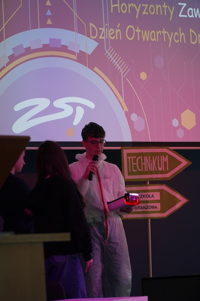 Wydarzenie rozpoczęło się częścią oficjalną w auli szkolnej, podczas której zaprezentowano ofertę edukacyjną szkoły, kierunki kształcenia oraz możliwości rozwoju zawodowego uczniów. Goście mieli okazję poznać specyfikę nauki w ZST oraz dowiedzieć się więcej o współpracy szkoły z pracodawcami i udziałem w projektach wspierających kształcenie zawodowe.